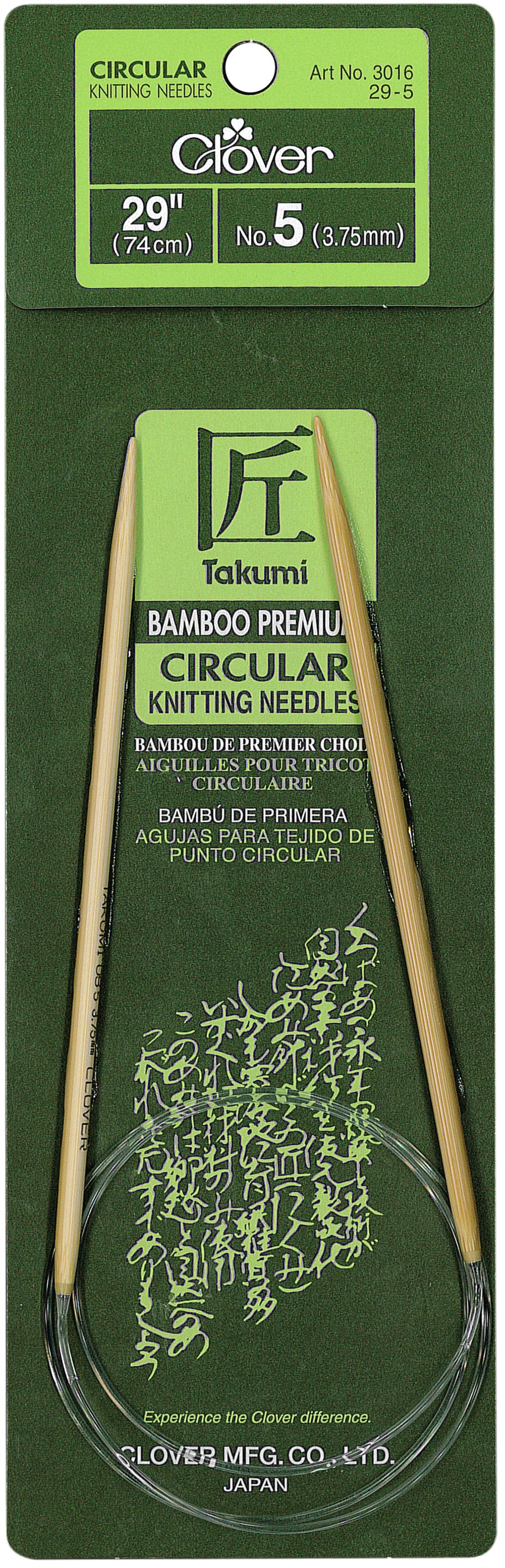 CLOVER-Bamboo Circular Knitting Needles: 29in. Bamboo has a special look and feel which improves with age which makes these knitting needles an attractive addition to any knitting bag. Feature smooth knitting right from the start. 60% lighter than aluminum needles of the same size so your hands will not tire even after long hours of knitting! Imported.