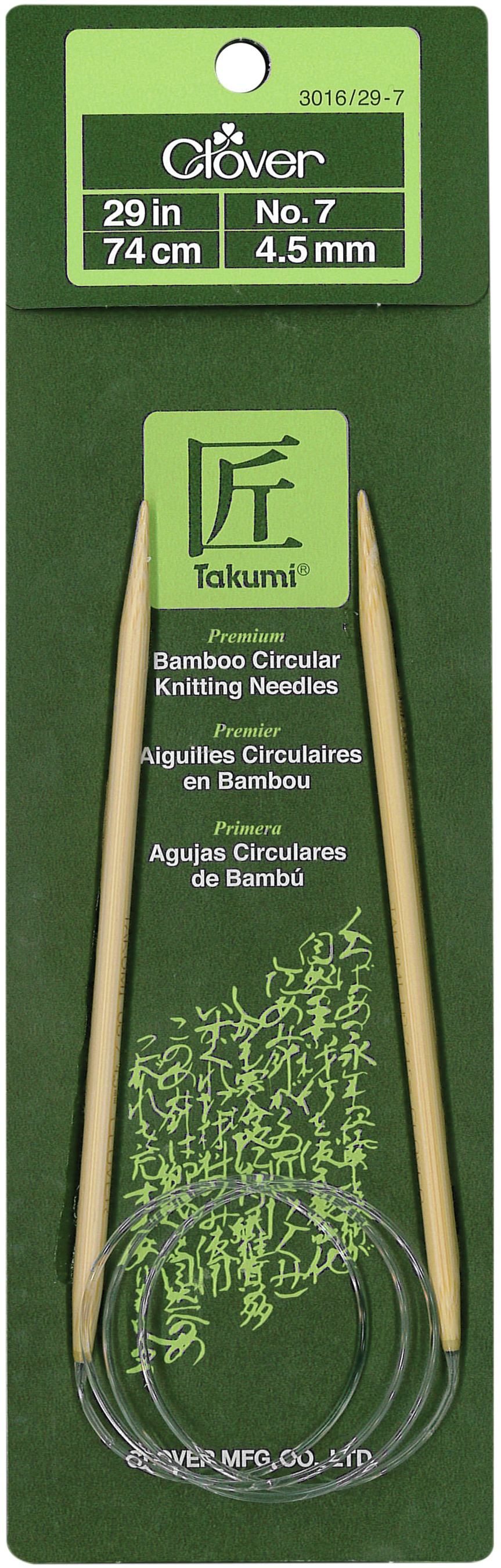 CLOVER-Bamboo Circular Knitting Needles: 29in. Bamboo has a special look and feel which improves with age which makes these knitting needles an attractive addition to any knitting bag. Feature smooth knitting right from the start. 60% lighter than aluminum needles of the same size so your hands will not tire even after long hours of knitting! Imported.