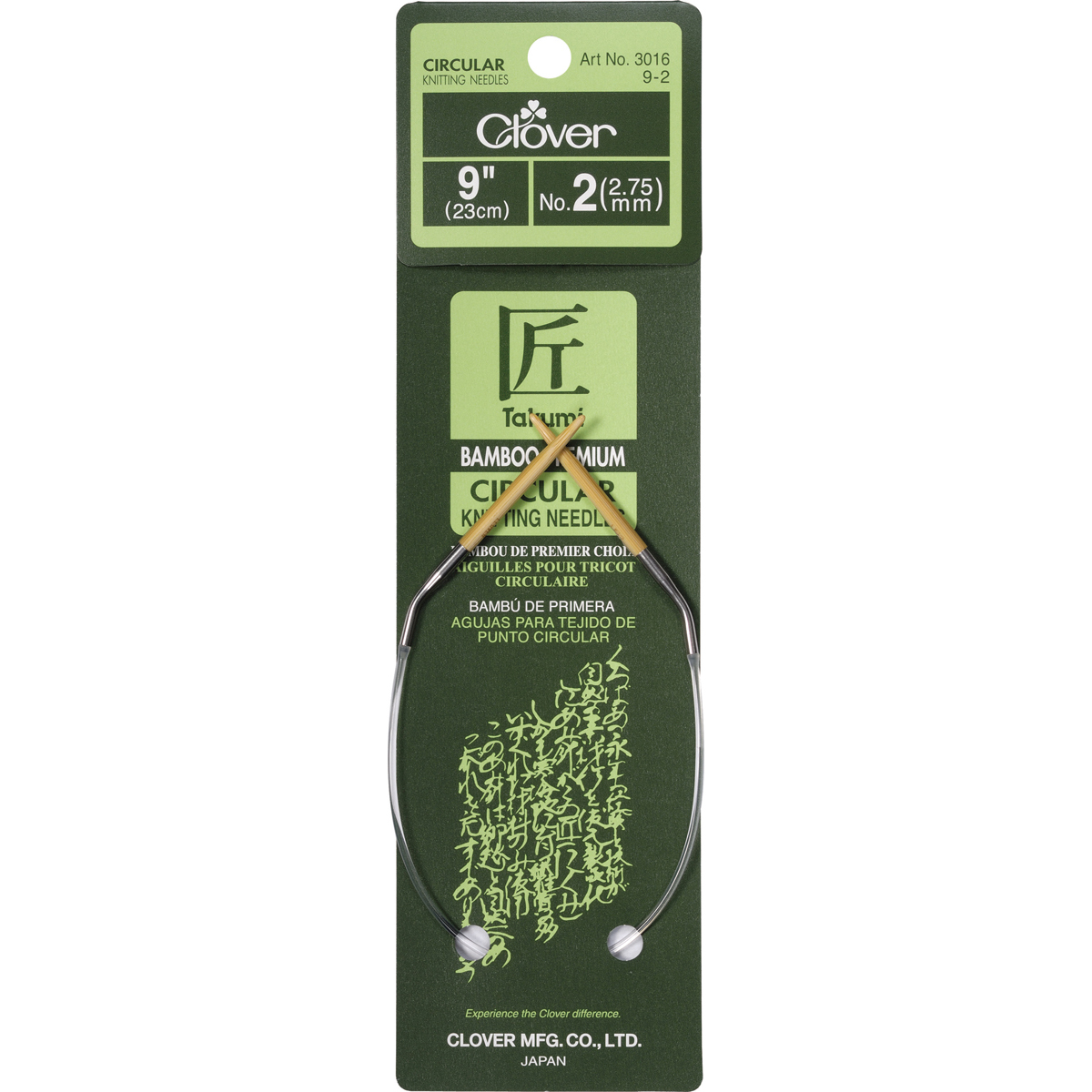 Takumi Bamboo Circular Knitting Needles 9" Size 2/2.75mm
