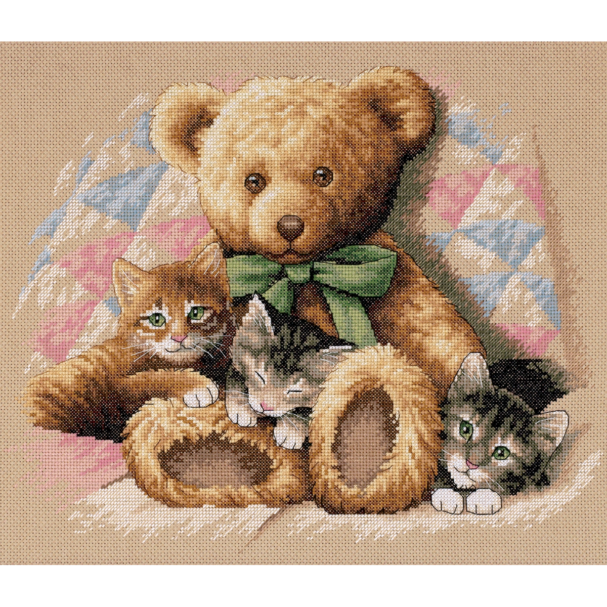 Teddy & Kittens Counted Cross Stitch Kit 14"X12" 14 Count