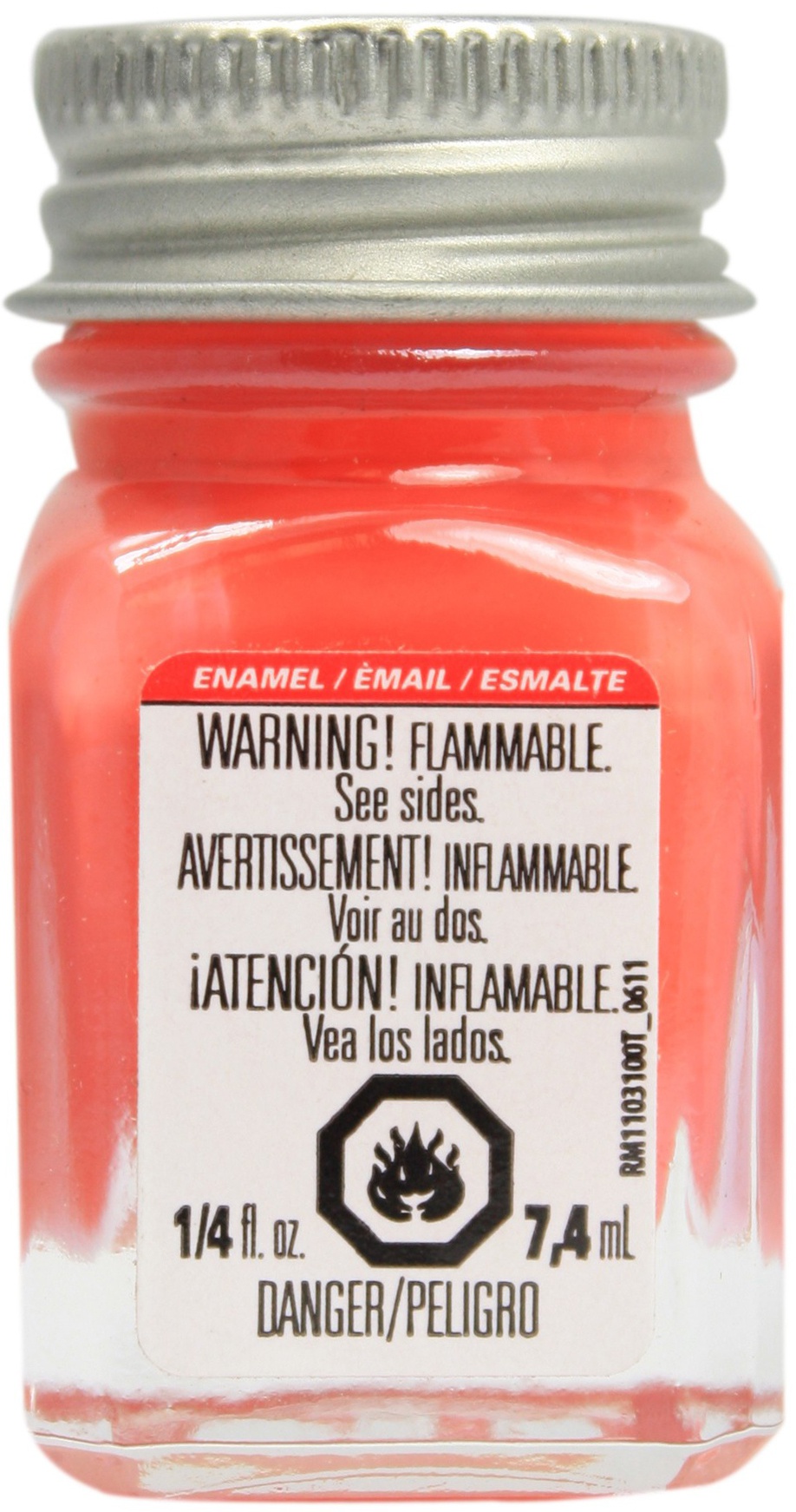Testors-Enamel Paint. These all-purpose enamel paints can be used on many kinds of surfaces. Finely ground pigments give superb flow and coverage. They are lead free, fast-drying, easy to apply, and cure in 48 hours. This package contains one 25oz (7.4mL) bottle of enamel paint. Available in a wide variety of colors (each sold separately). WARNING-FLAMMABLE-Keep away from heat, flame, and children. Conforms to ASTM D-4236. Made in USA.