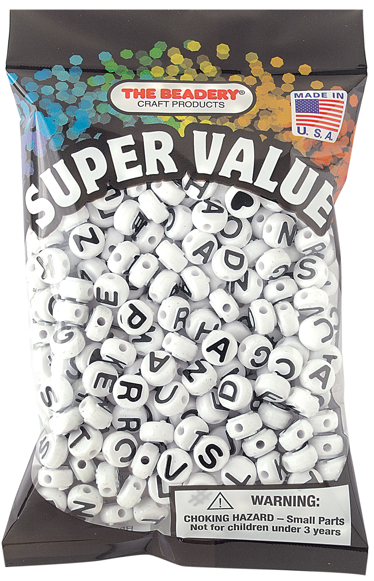 The perfect addition to your bead collection. These make personalization a breeze! Use on keychains, friendship bracelets, and more! Produced in the USA from high quality plastic. This package contains 10MM round white alphabet beads with black lettering. Made in USA.