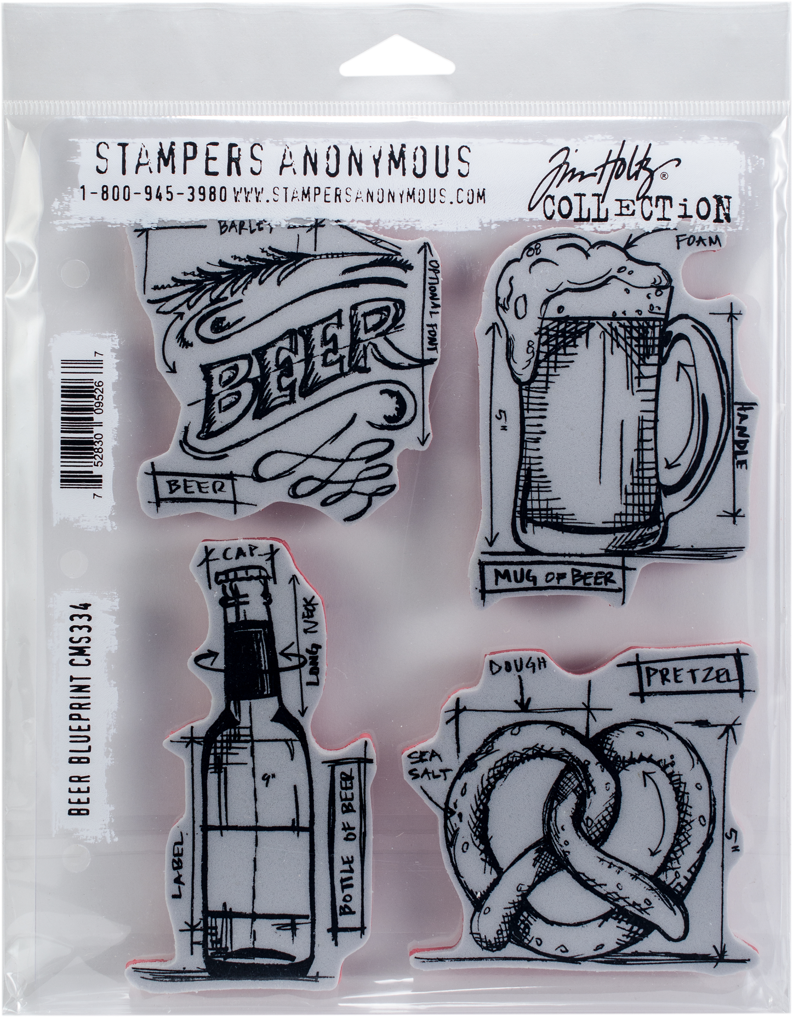 Tim Holtz Cling Stamps 7"X8.5" Beer Blueprint