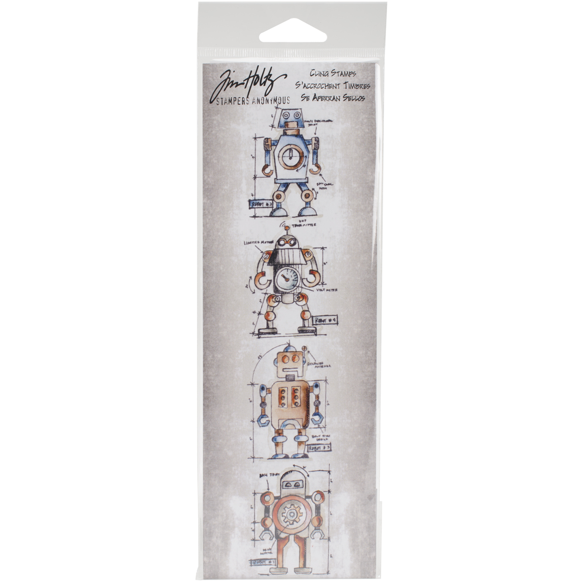 Tim Holtz Mini Blueprints Strip Cling Stamps 3"X10" Robot