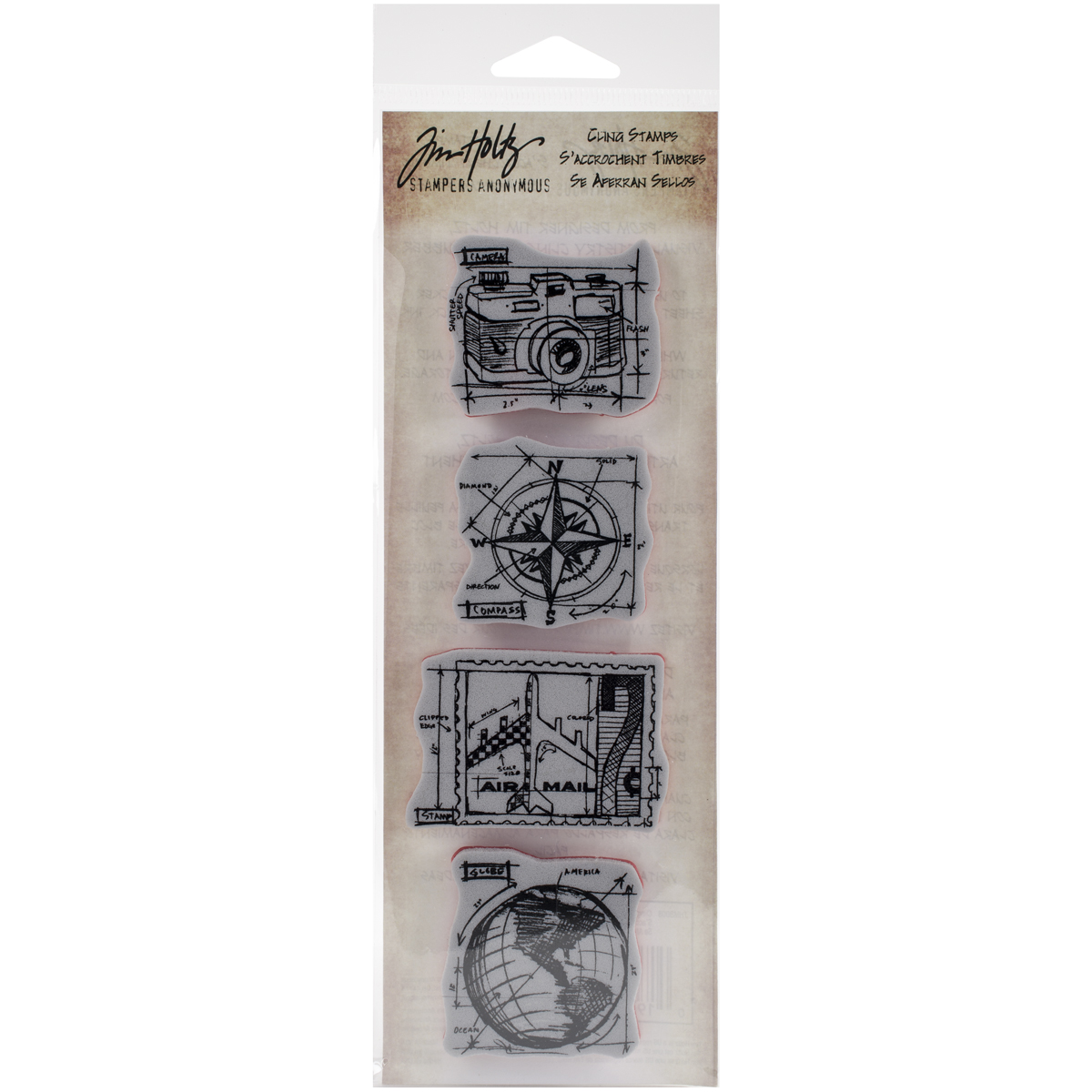 Stampers Anonymous-Tim Holtz Mini Blueprints Strip Cling Mounted Rubber Stamp Set. This stamp set features thick foam stamps with deeply etched rubber. Stamps cling to any clear acrylic block and are neatly trimmed! This package contains four cling rubber stamps on one 9x3 inch backing sheet. Comes in a variety of designs. Each sold separately. Made in USA.