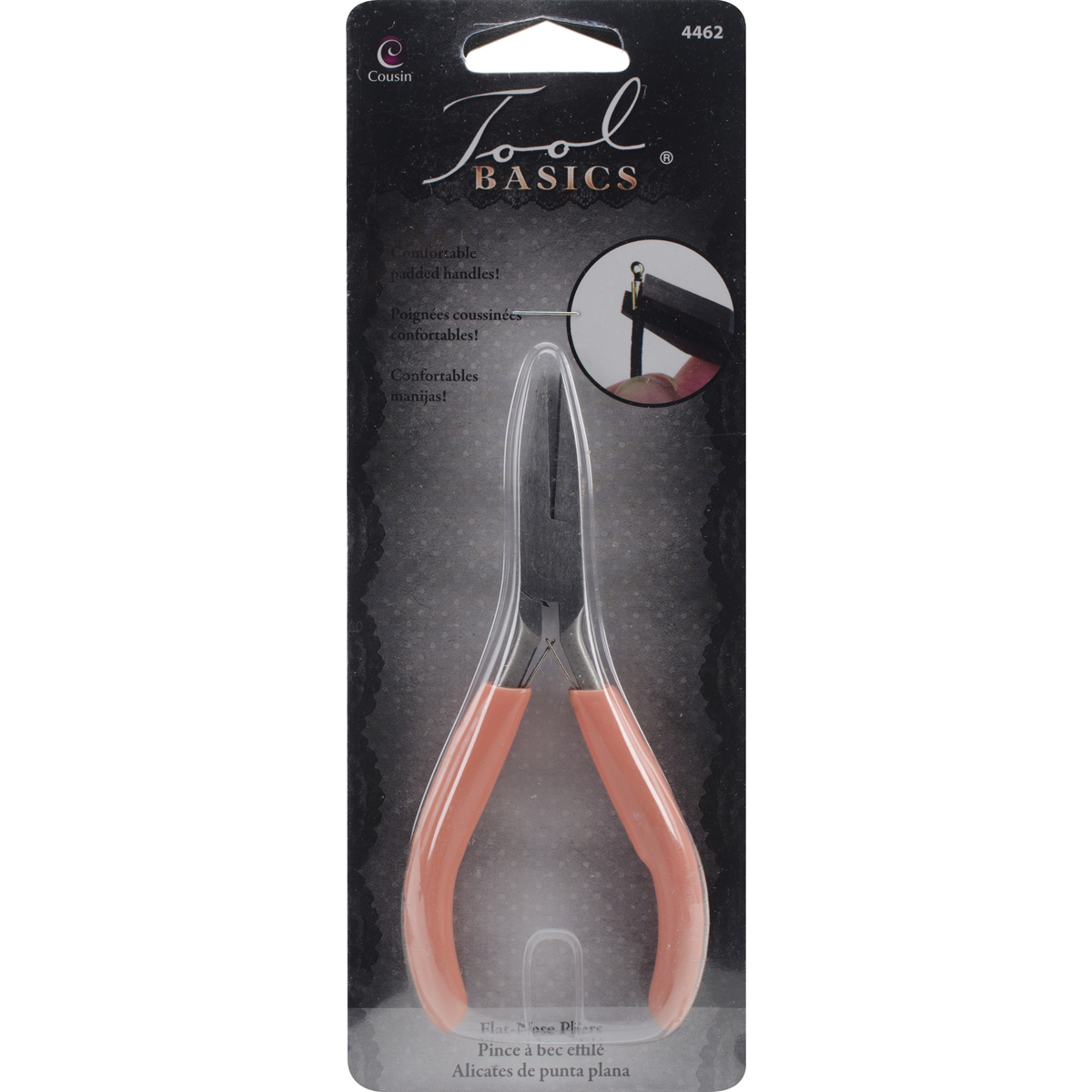 COUSIN-Craft and Jewelry Bent Nose Pliers. The perfect edge for creating sharp bends and right angles in wire, this plier has prongs that grip flat objects and can also straighten bent wire. This package contains one 4-1/2 inch flat nose pliers with orange handles. Imported.