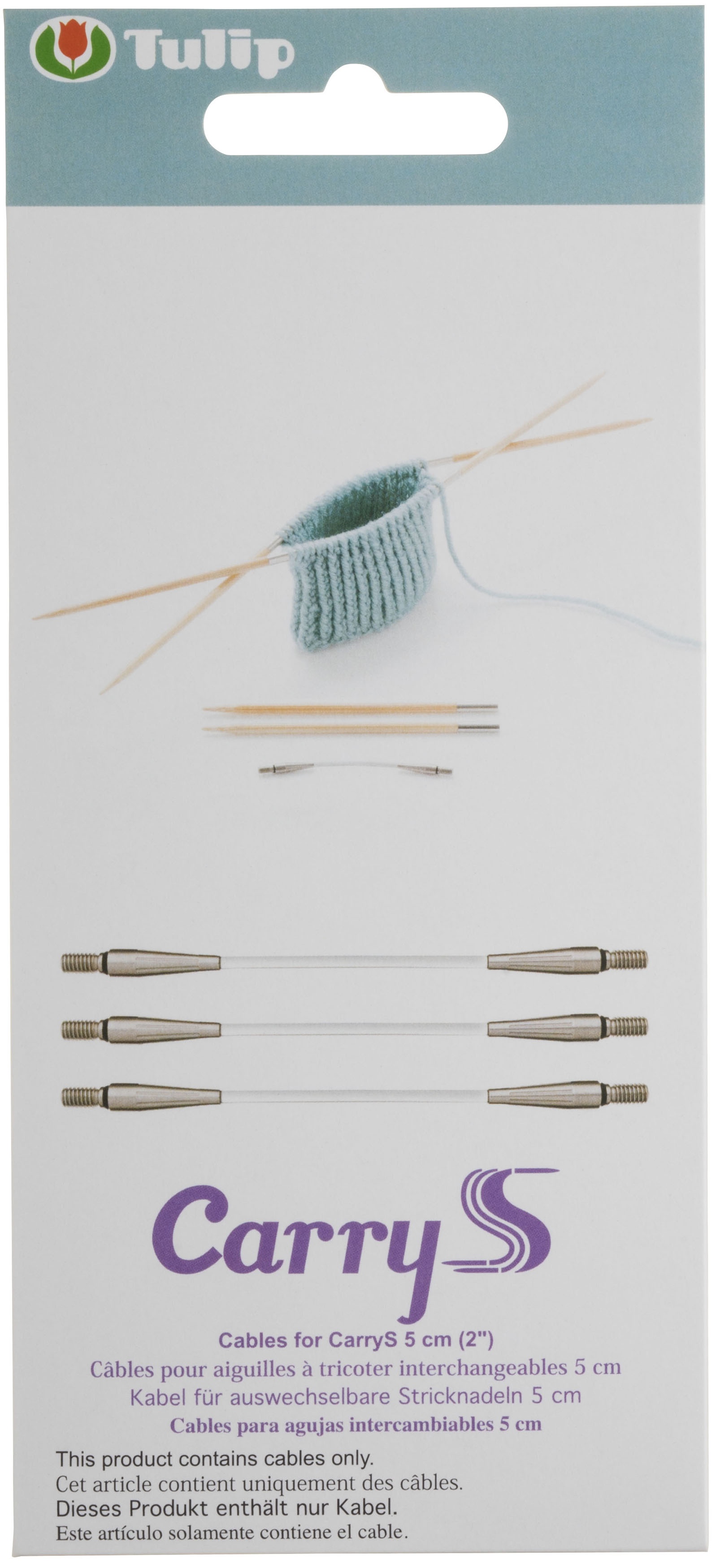 Easily change to a tiny, swivel cable for smaller projects. Set contains: 3 pairs of No.3 (3.25mm) needles (6 needles in total), 3 cables 2"(5cm) CarryS is recommended for knitting of small tubes, mittens, and socks. The needle, cables, and accessories of CarryC Long Fine Gauge are not compatible with other series.