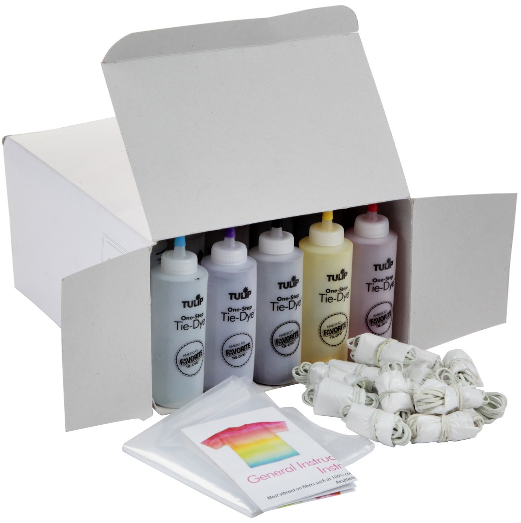 Throw the ultimate summer bash with this all-inclusive Tulip Tie-Dye Bundle that's bursting with bold, colorful fun! This value party pack is perfect for sizzling up summer camps, fun at family reunions, backyard bashes and more. Dyes up to 90 projects. This 5.59x9x10.79 inch package contains thirty vibrant dye colors, ten pairs of gloves, 100 rubber bands, a plastic surface cover and inspiration booklet. Imported.
