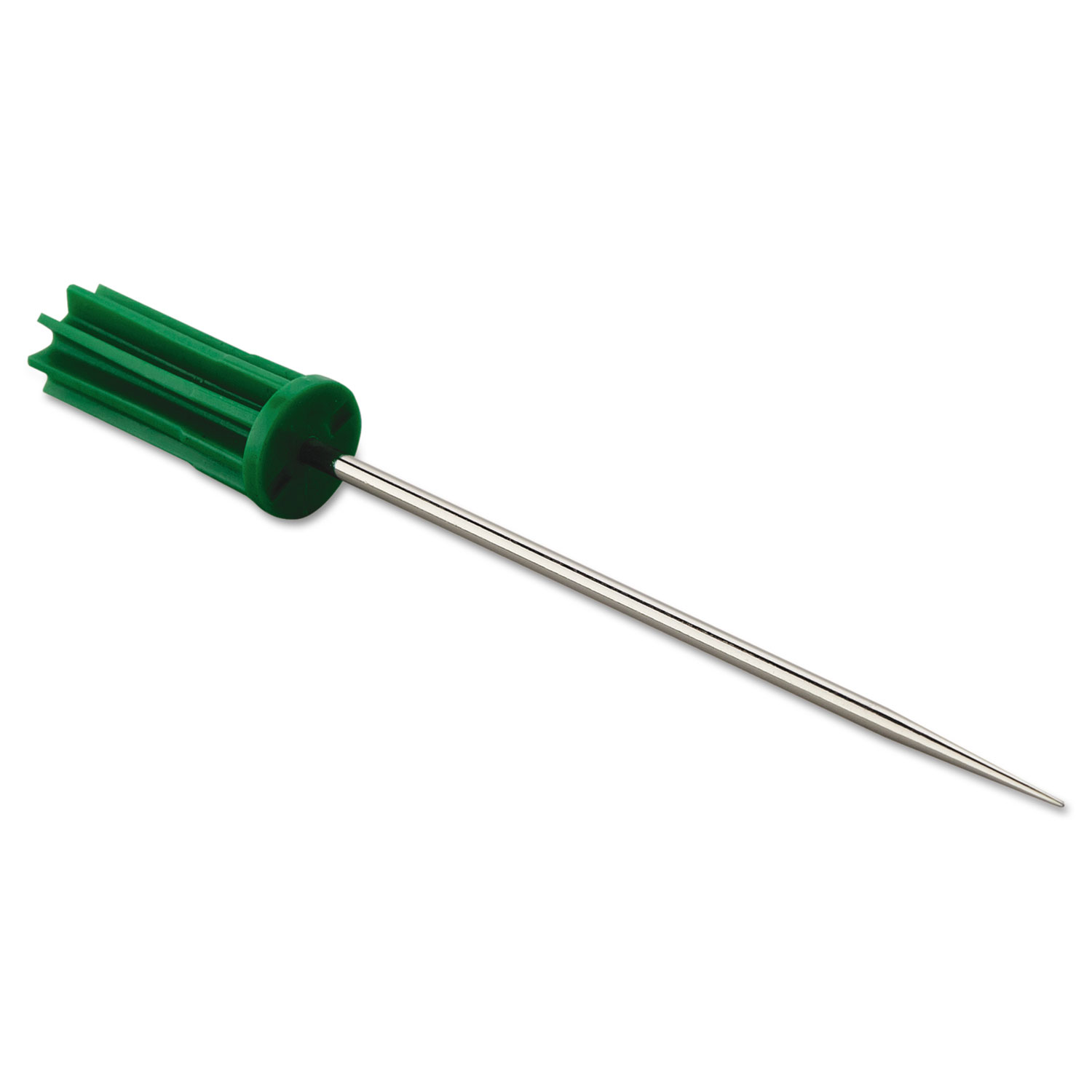 Sharp, strong pins provide reliable performance. Plug fits tightly, ensuring slip-free use. Designed for Unger® People's Paper Picker Pin Poles (sold separately). Handle Material: Stainless Steel; Material(s): Stainless Steel; Length: 4"; Color(s): Stainless Steel/Green.