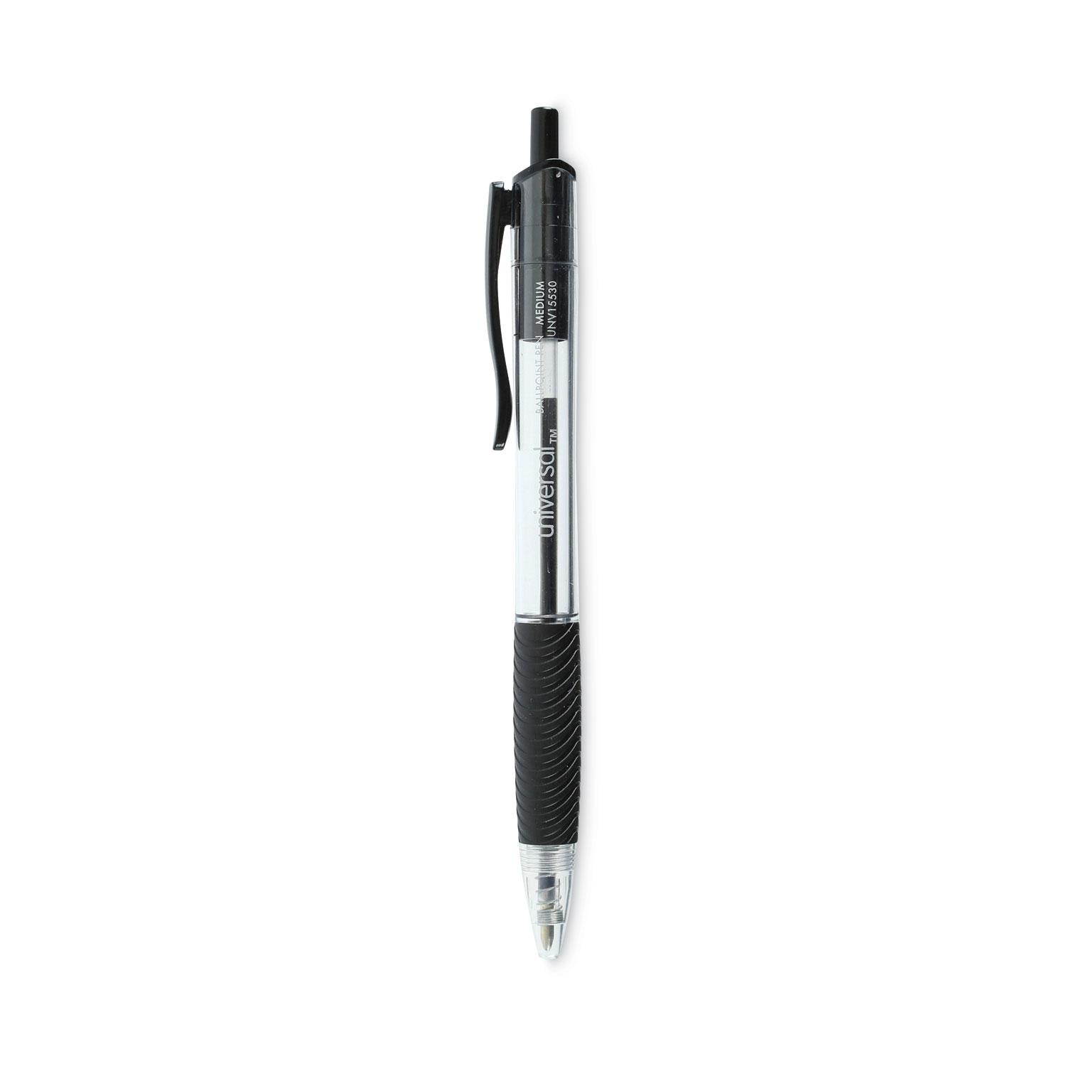 Universal™ Comfort Grip Clear Barrel Retractable Ballpoint Pen, Black Ink, 1mm, 48/Set