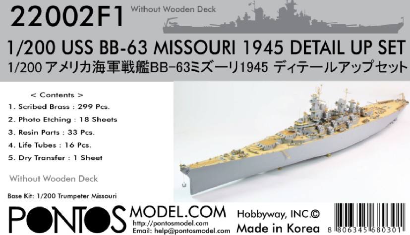 USS Missouri BB63 1945 Detail Set -- Plastic Model Ship Accessory -- 1/200 Scale -- #220021