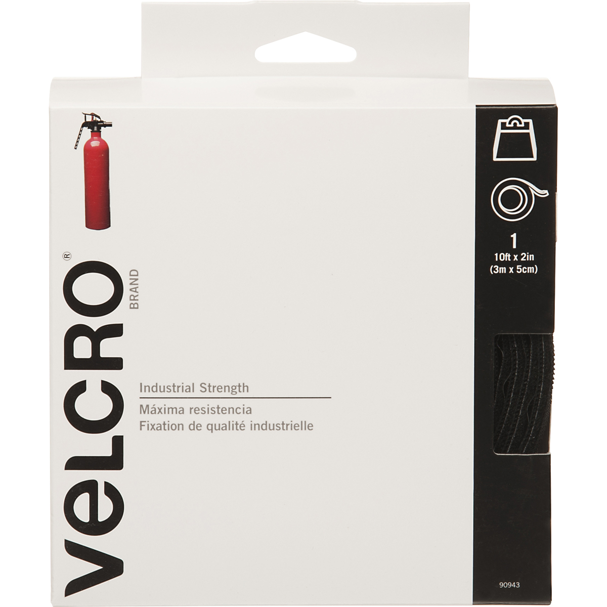 VELCRO(R) BRAND- Self-Adhesive Industrial Strength Tape. This industrial strength tape is 50% stronger than traditional fasteners and great for all types of indoor and outdoor projects which require a superior strength or waterproof fastener. The hook side is molded plastic rather than woven and the adhesive is waterproof. This package contains 10 feet of 2 inch wide black hook-and-loop tape. Imported.