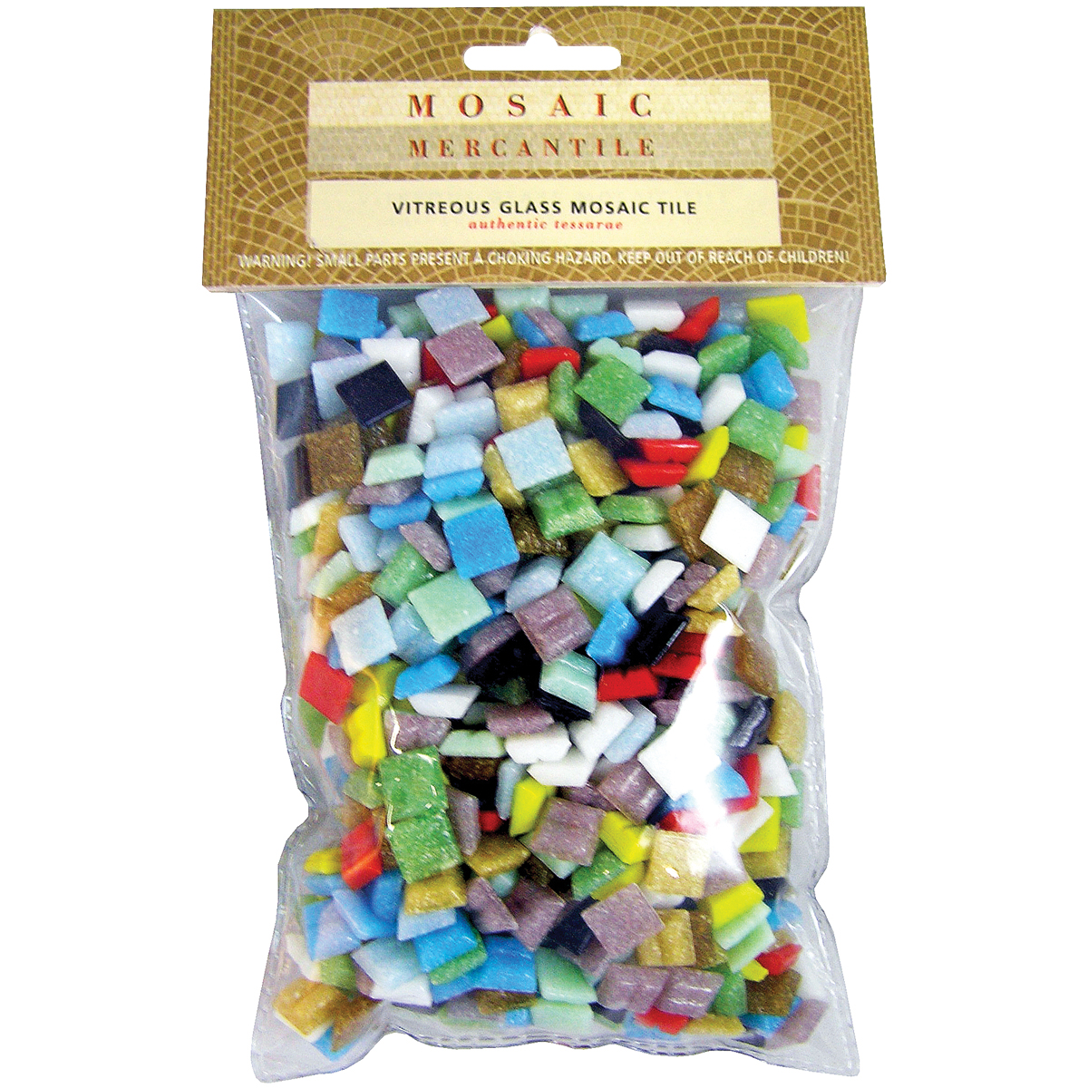 MOSAIC MERCANTILE-Crafter's Cut Mosaic Tiles. Mosaic Mercantile produces a wide spectrum of authentic mosaic tile, tools, kits, adhesives, and grouts. These Crafter's Cut tiles are perfect for mosaic crafters and experienced mosaic artists alike. The pre-cut glass tiles are designed for easy application and do not require any nipping. With a wide variety of colors and styles to choose from, they may be used in infinite combinations on nearly any reasonably smooth surface. This package contains 1 pound of pre-cut glass mosaic tiles. WARNING-Skin cuts, lacerations, and eye injury are possible from broken tiles or tile shards. Conforms to ASTM D4236. Made in USA.