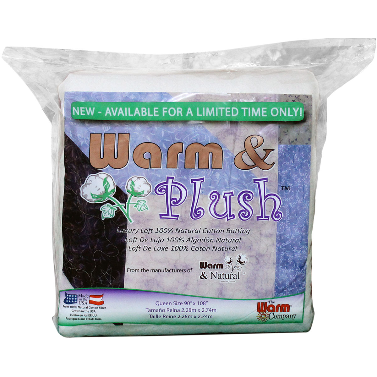 WARM COMPANY-Warm & Plush Cotton Batting: Queen Size. The warmest natural quilt batting ever manufactured! No scrim, just 50% more soft, warm cotton. The added weight is comfortable & ideal for loved ones that can never seem to get warm. This package contains one 90x108 inch queen size cotton batting. Made in USA.