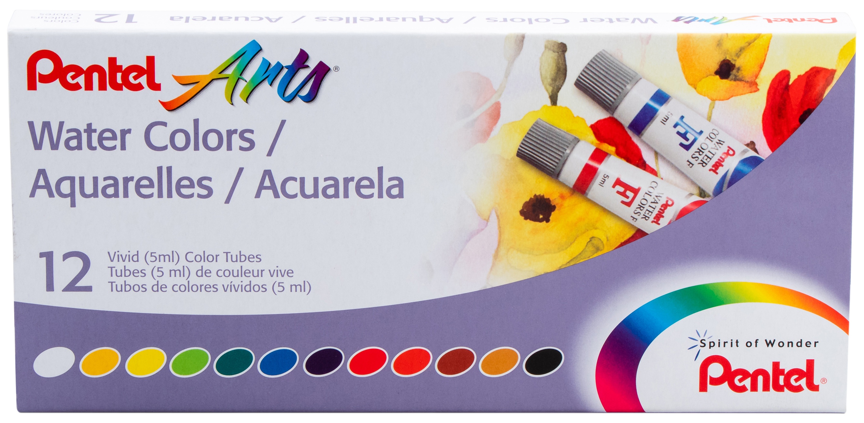 PENTEL-Water Colors. These watercolors blend easily to create subtle hues, dry evenly, resist fading, and won't crack or flake. This package contains twelve 5ml tubes of water color. Conforms to ASTM D4236. Imported.