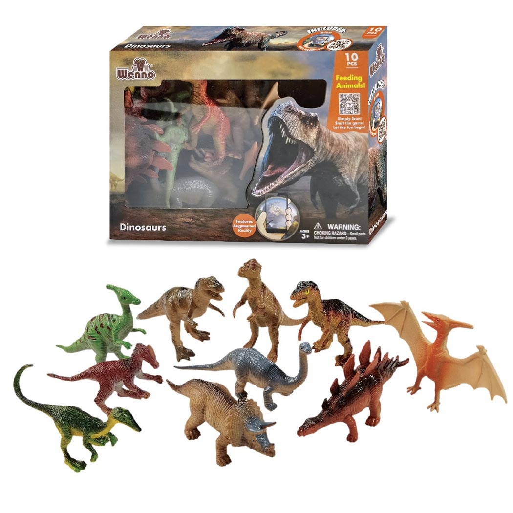 Learn animal names, habitats and what they eat. Figures are about 3-5 inches. This package contains one window box with 10 dinosaur figurines and downloadable app for a stem game. Recommended ages three years and up. Imported.