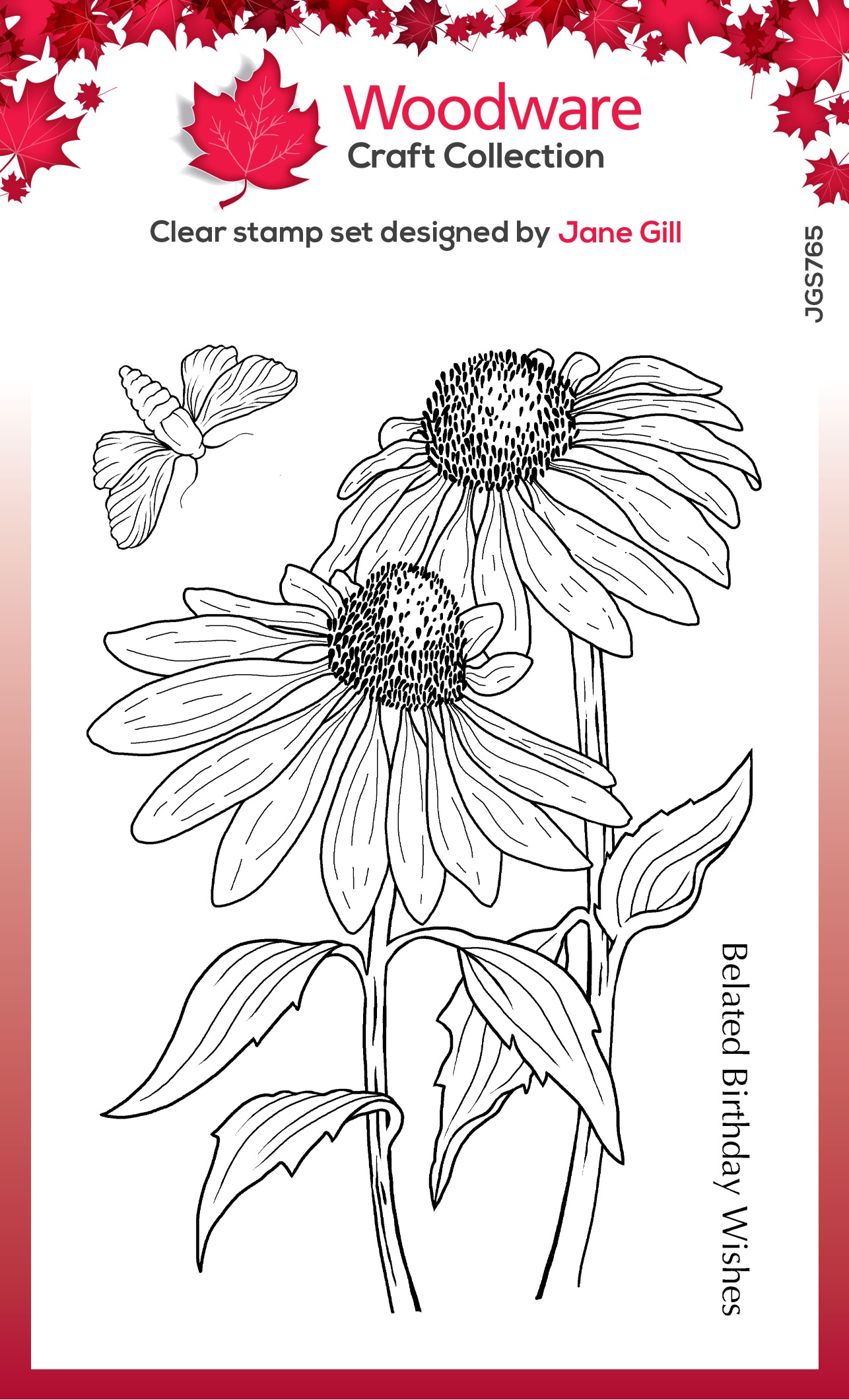 Woodware Clear Stamps 4"X6"-Echinacea & Moth