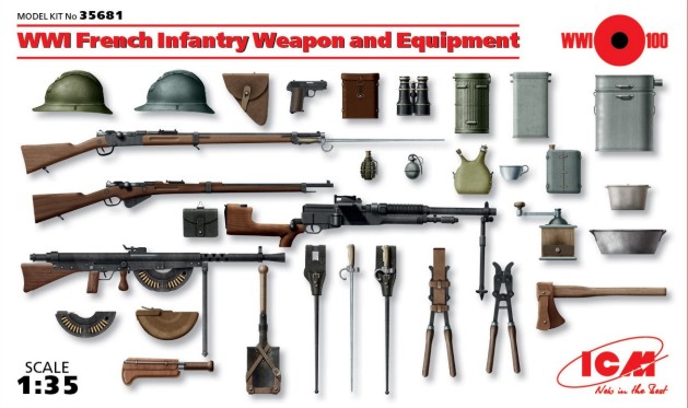 WWI French Infantry Weapons & Equipment -- Plastic Model Weapon Kit -- 1/35 Scale -- #35681