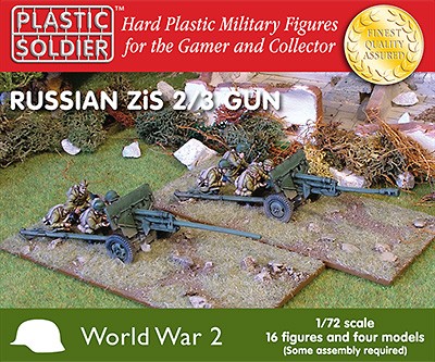 WWII Russian Zis2/3 Gun (4) & Crew (16) -- Plastic Model Artillery Kit -- 1/72 Scale -- #7212