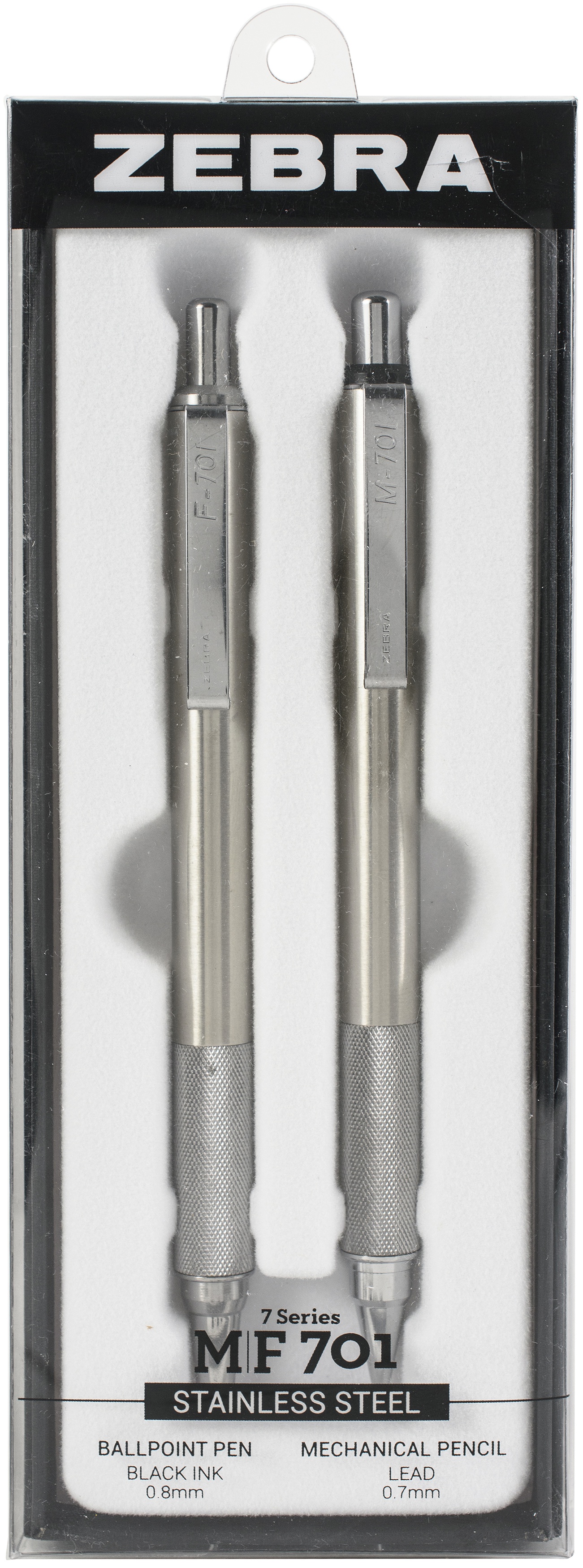 Zebra M/F 701 Stainless Steel Pen & Pencil Gift Set 2/Pkg Pen 0.8mm & Mechanical Pencil 0.7mm