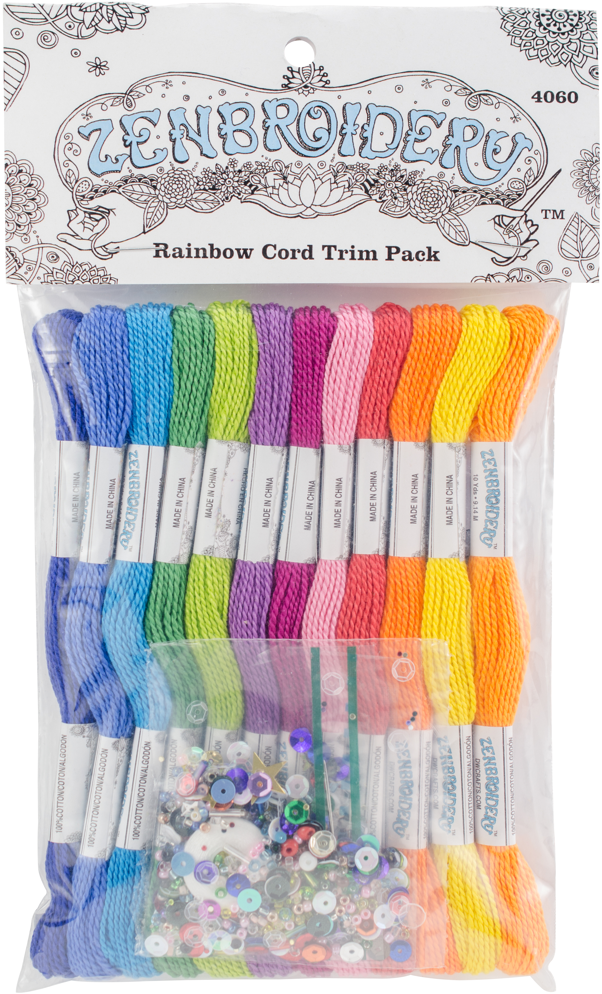 This pack is ideal for stitching and embellishing your Zenbroidery (sold separately).This 5.5x7 inch package contains twelve skeins of 100% cotton embroidery floss in assorted colors, sewing thread, assorted sequins and beads, two needles and illustrated stitch diagrams. Imported.
