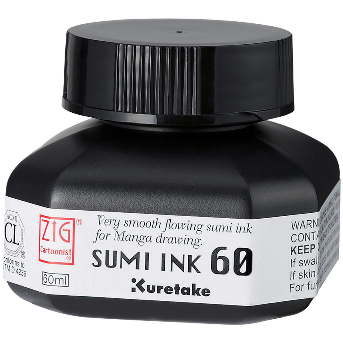 Kuretake-ZIG Cartoonist Pen Ink 60: Sumi. Perfect for the manga cartoonist. This package contains one 60 ml bottle of black water- based pigment. Waterproof after it dries. Very smooth flowing sumi ink for Manga drawing. Conforms to ASTM D4236. Imported.