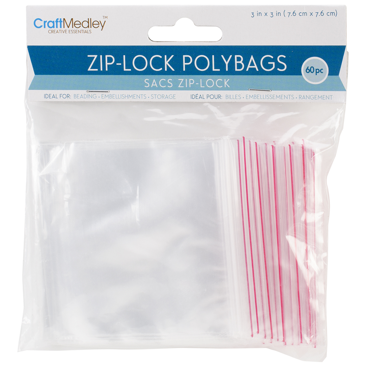 Multicraft Imports-Zip Lock Polybags. Ideal for beading, storage and embellishments! This package contains sixty 3x3 inch zip-lock bags. Imported.