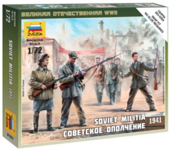 This is the 1/72 Scale Soviet Militia 1941 Plastic Model Kit from Zvezda. Suitable for Ages 10 & Older.